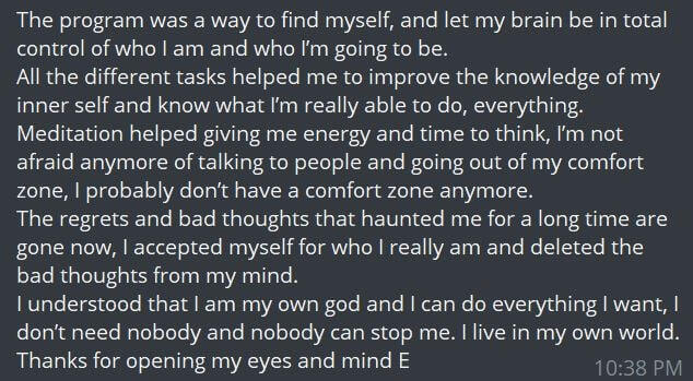 The white pill program is for those who are ready. It's simple, but not easy. The techniques and exercises force you to discover who you truly are. Where you are lacking and what issues you have failed to acknowledge. Ego is direct with the framework he lays out. I recommend this program to those who are ready to begin the new chapter of their life. If you have suffered the consequences of being an emotional wreck, this program is for you. It truly is a personal choice to better yourself and accept the work that must be done. My life been awakened with clarity after taking this program. Ego is a sincere teacher and provides clear cut insights. The return on investment from this purchase is invaluable and can not be quantified.